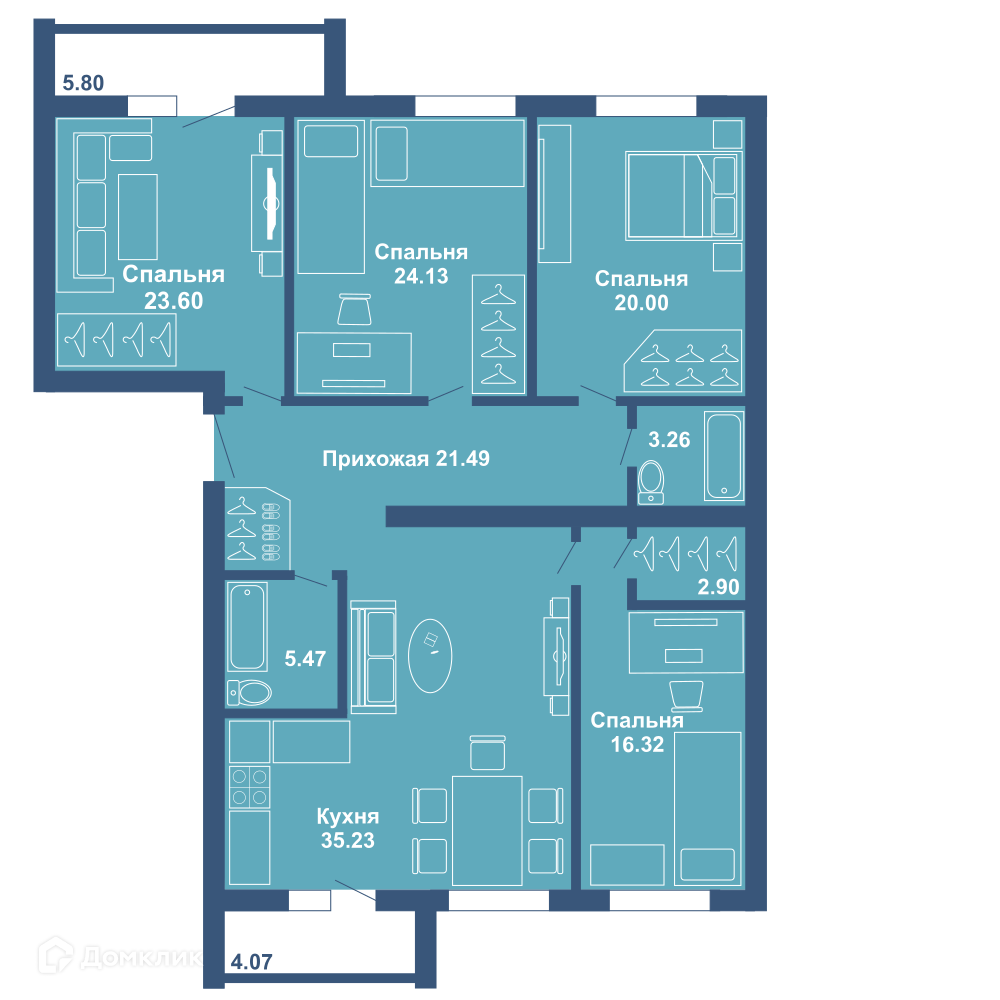 Площади квартир