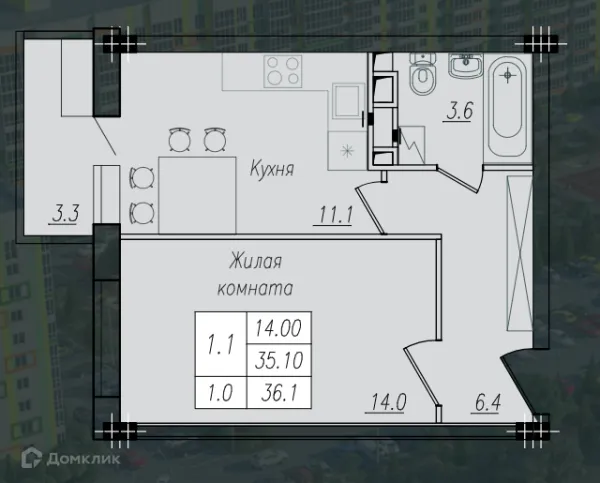 1 комн. квартира в Курске в ипотеку от 14 826 руб/месяц