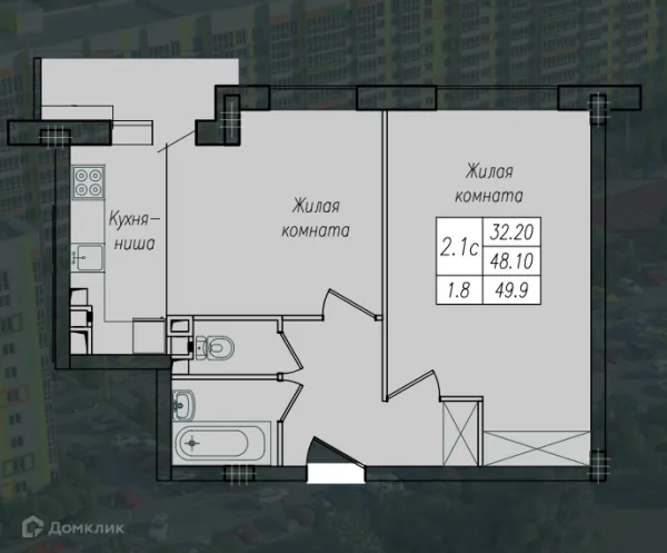 2 комн. квартира в Курске в ипотеку от 21 243 руб/месяц