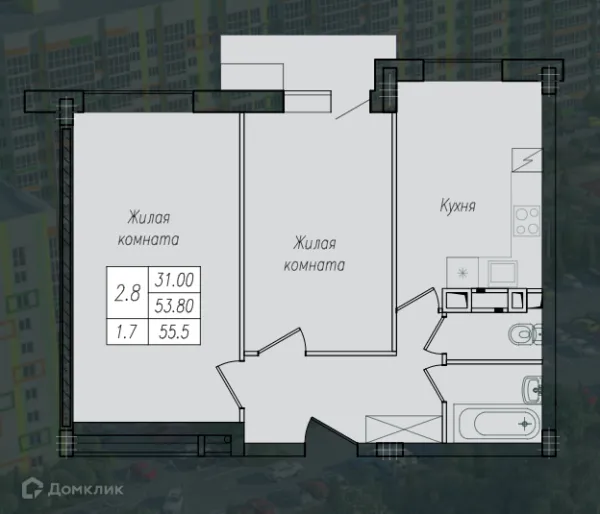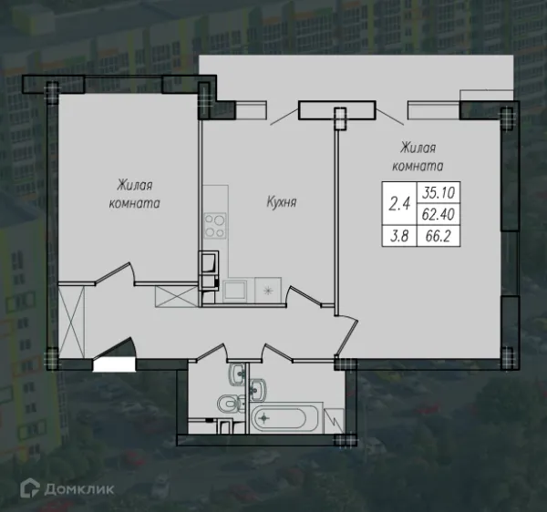 2 комн. квартира в Курске в ипотеку от 20 696 руб/месяц