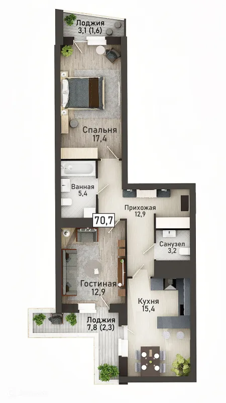 2 комн. квартира в Курске в ипотеку от 81 400 руб/месяц