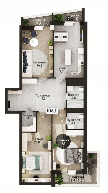 3 комн. квартира в Курске в ипотеку от 106 610 руб/месяц