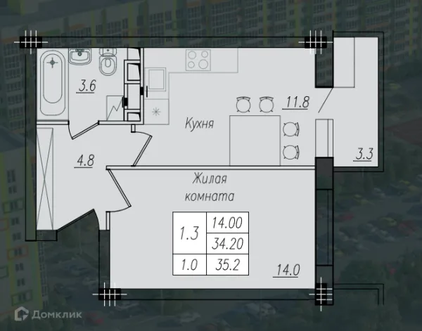1 комн. квартира в Курске в ипотеку от 14 049 руб/месяц