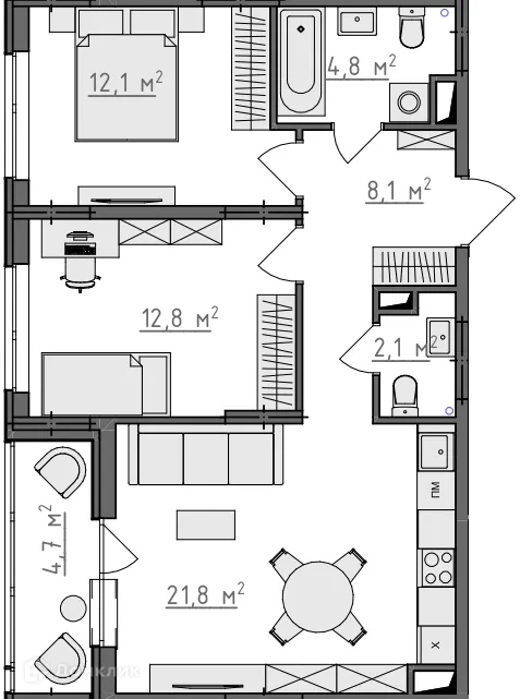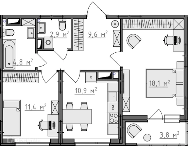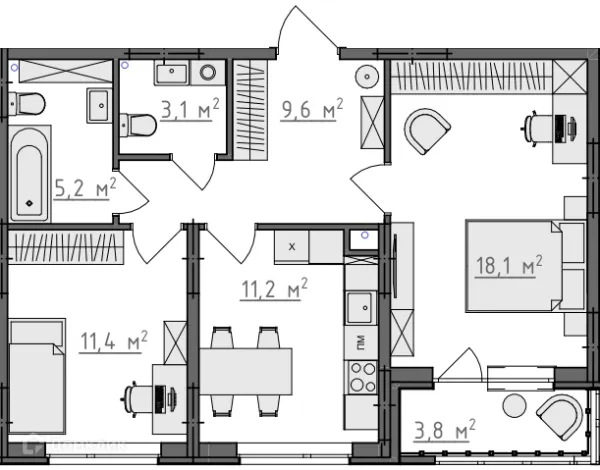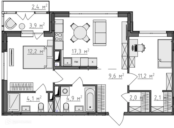 3 комн. квартира в Владимире в ипотеку от 71 915 руб/месяц